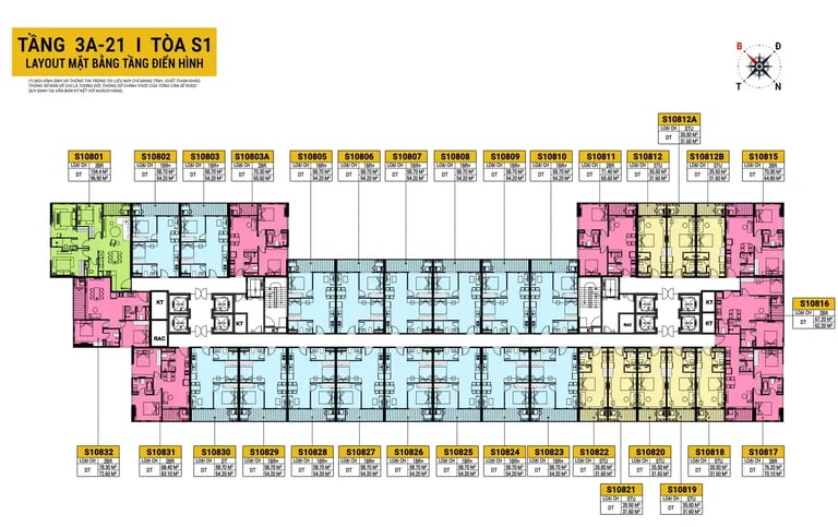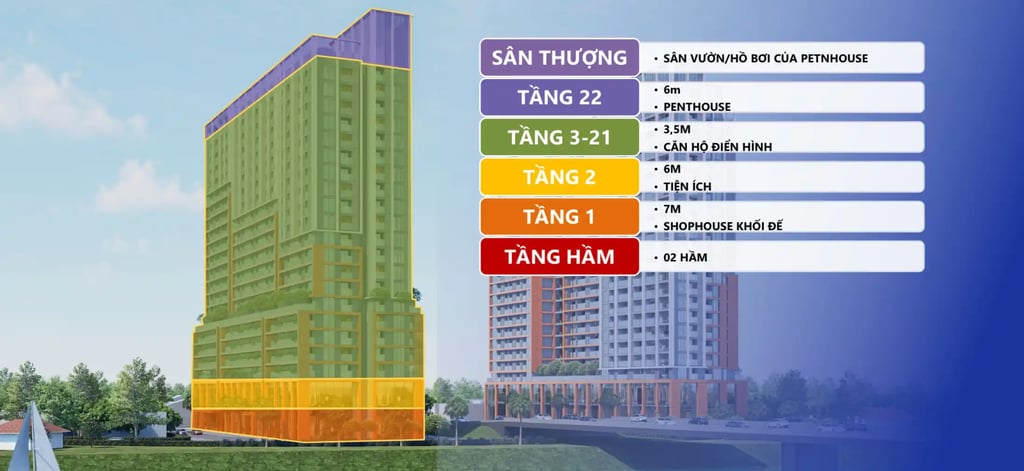 Tầng 3–21: Căn hộ cao cấp (Studio – 3PN)